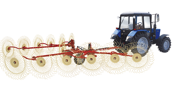 Грабли-ворошилки валкообразователи – это гидрофицированные прицепные агрегаты, способные, в зависимости от условий применения и комплектации, выполнять одну из трех операций: ворошение провяленой травы в прокосах, сгребание ее из прокосов в валки и оборачивание валков. Выпускаются в навесном и прицепном исполнении шириной захвата 6м или 8м.