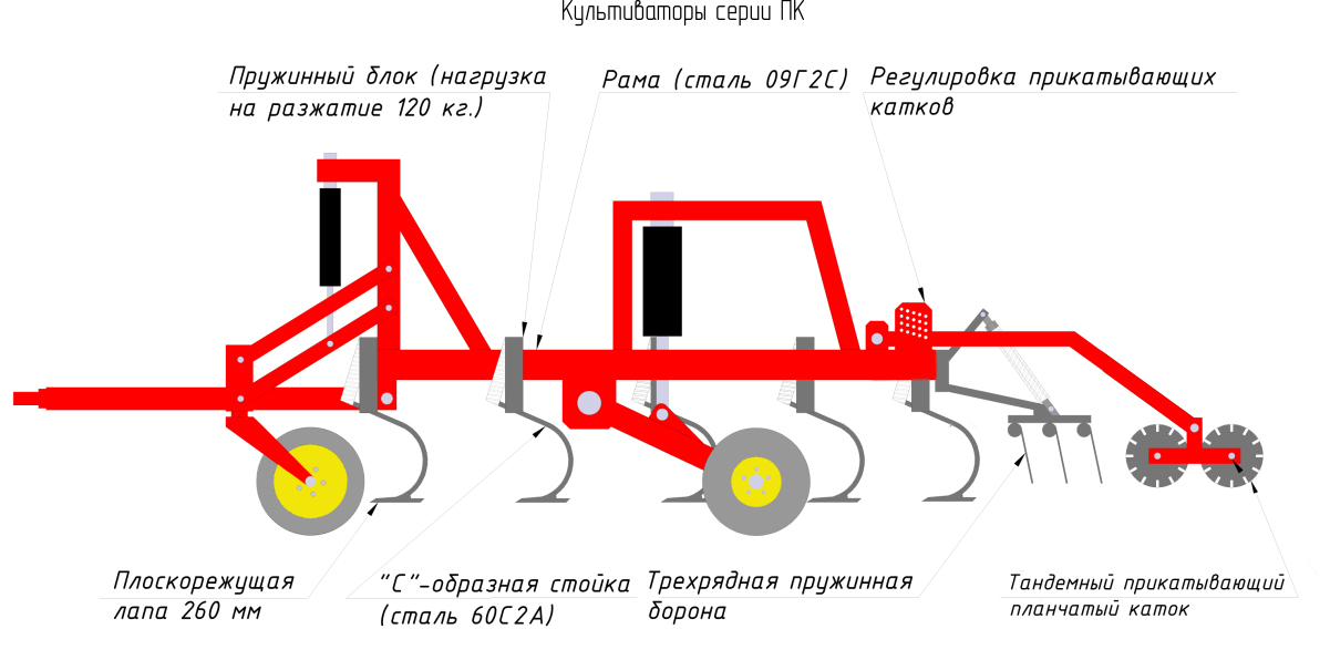 Многофункциональность культиваторов серии ПК обусловлена наличием следующих рабочих органов: